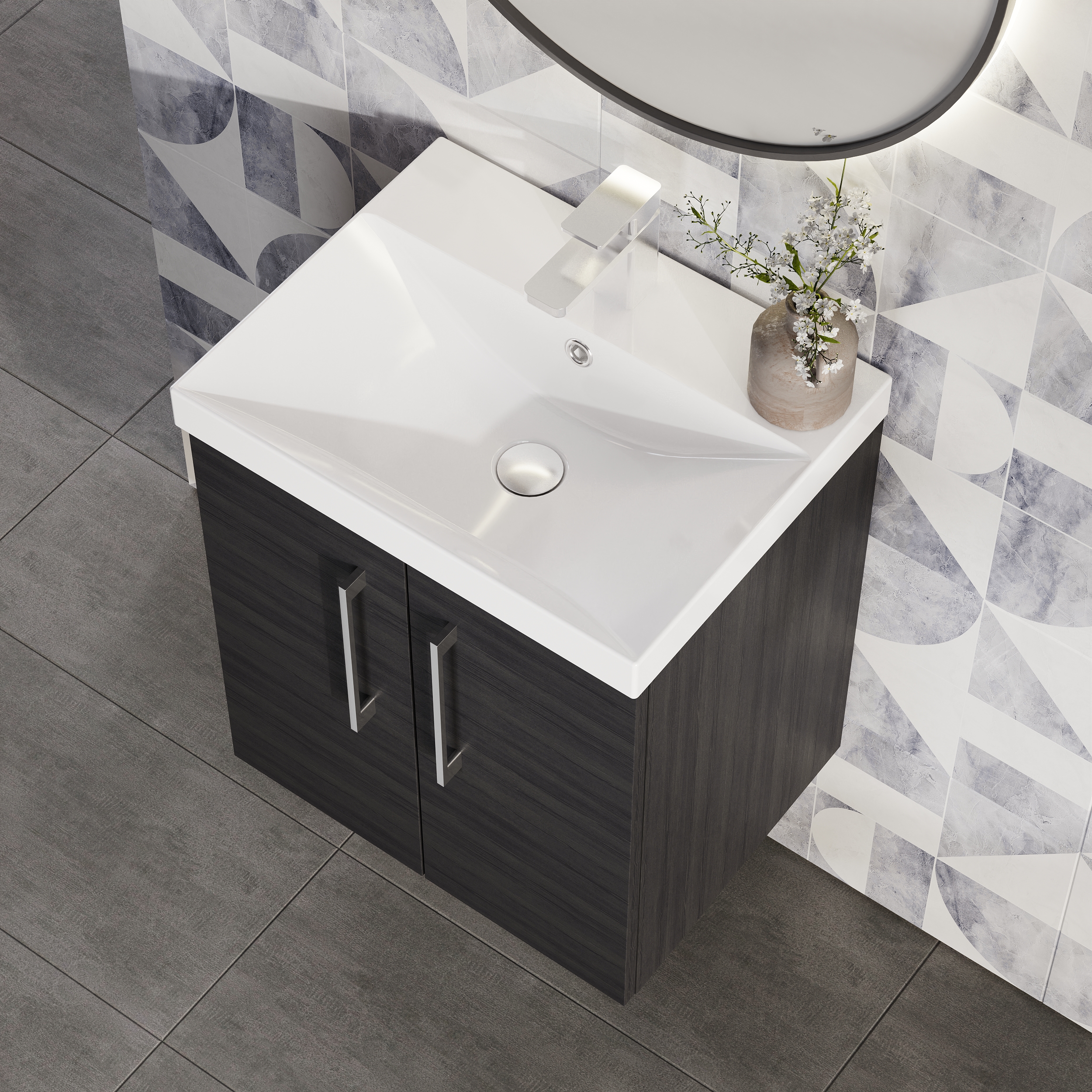 Nuie Arno 500mm Charcoal Black Wall Hung 2-Door Vanity Unit With Mid-Edge Basin
