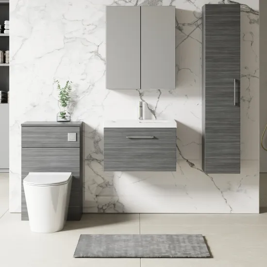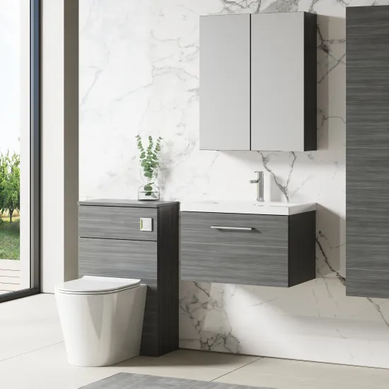 Nuie Arno 600mm Anthracite Woodgrain Wall Hung Vanity Unit With Basin