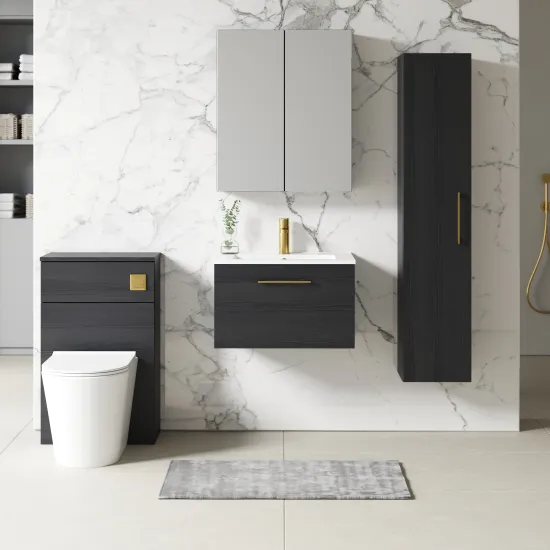 nuie Arno 600mm Wall Hung 1-Drawer Vanity & Minimalist Basin - Charcoal Black