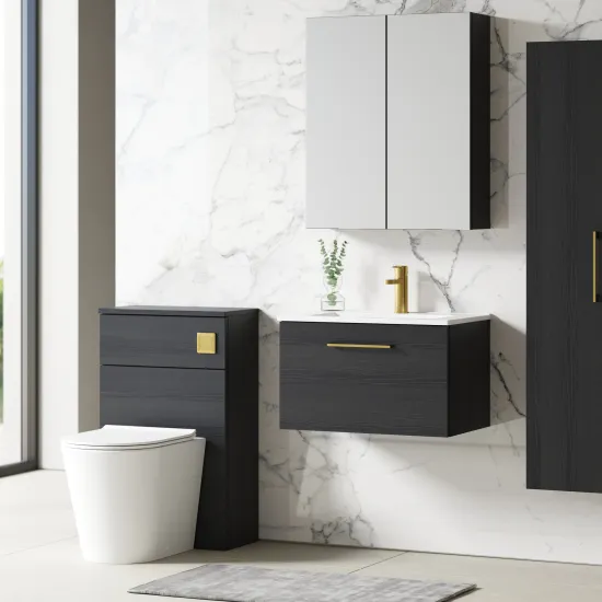 Nuie Arno 600mm Charcoal Black Wall Hung 1-Drawer Vanity Unit & Basin