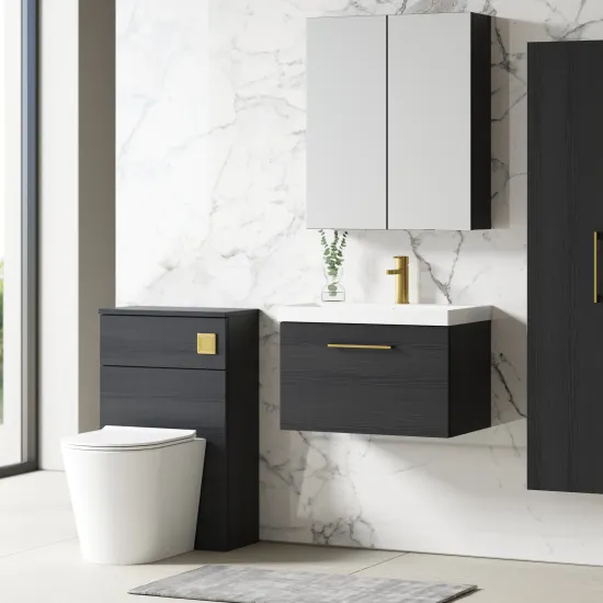 This unique charcoal black finish compliments any modern bathroom and creates a designer look