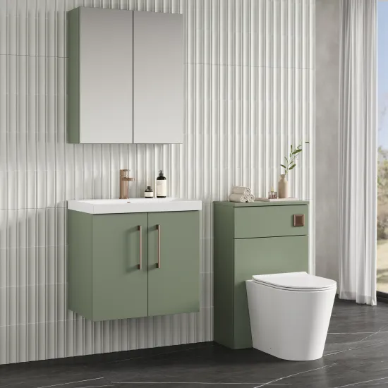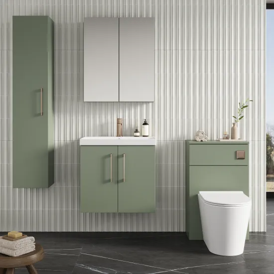 nuie Arno 600mm Wall Hung 2-Door Vanity & Thin-Edge Basin - Satin Green
