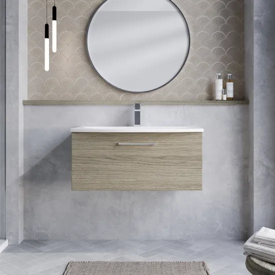 Nuie Arno 800mm Solace Oak 1-Drawer Wall Hung Vanity Unit With Basin