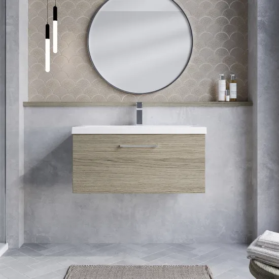 Nuie Arno 800mm Solace Oak Wall Hung 1-Drawer Vanity & Thin-Edge Basin