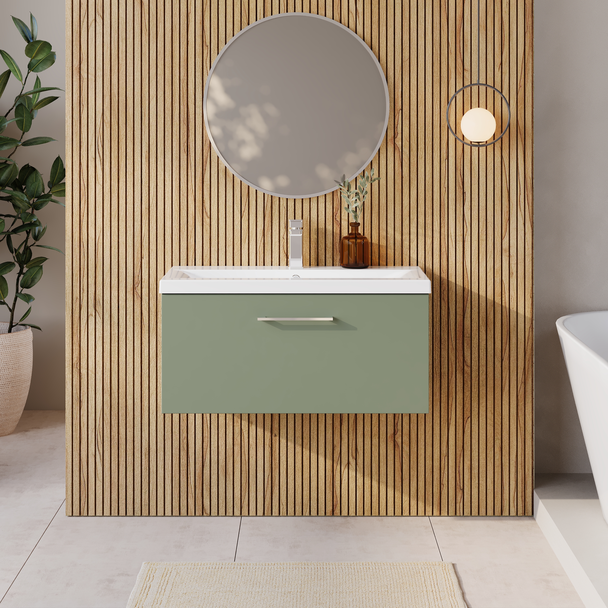 Nuie 800mm Satin Green Wall Hung 1-Drawer Vanity Unit with Basin