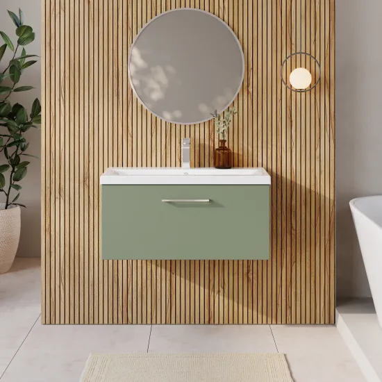 Nuie Arno 800mm Satin Green Wall Hung 1-Drawer Vanity Unit with Basin