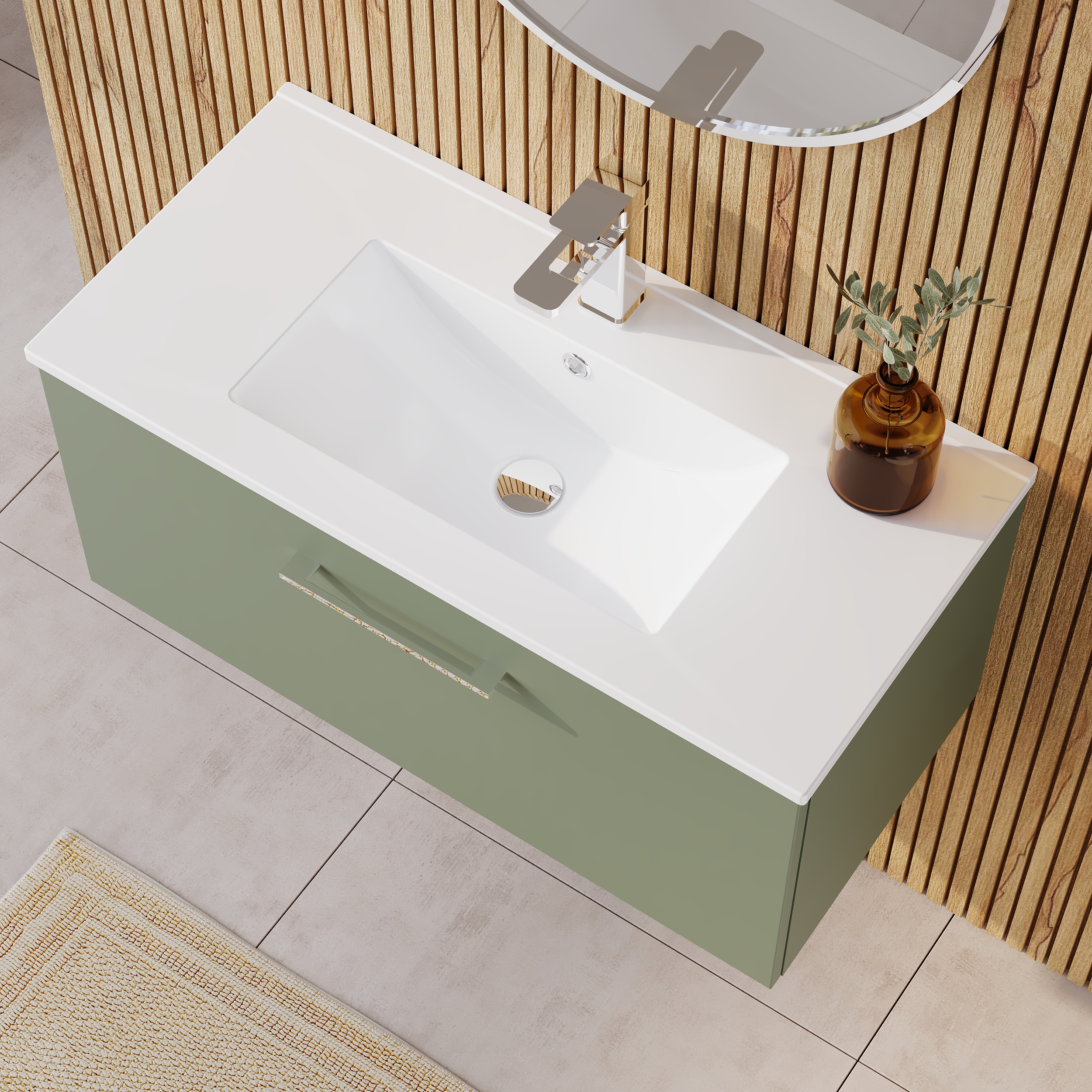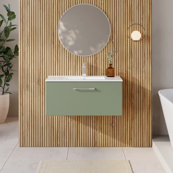 Nuie 800mm Satin Green Wall Hung 1-Drawer Vanity Unit with Basin