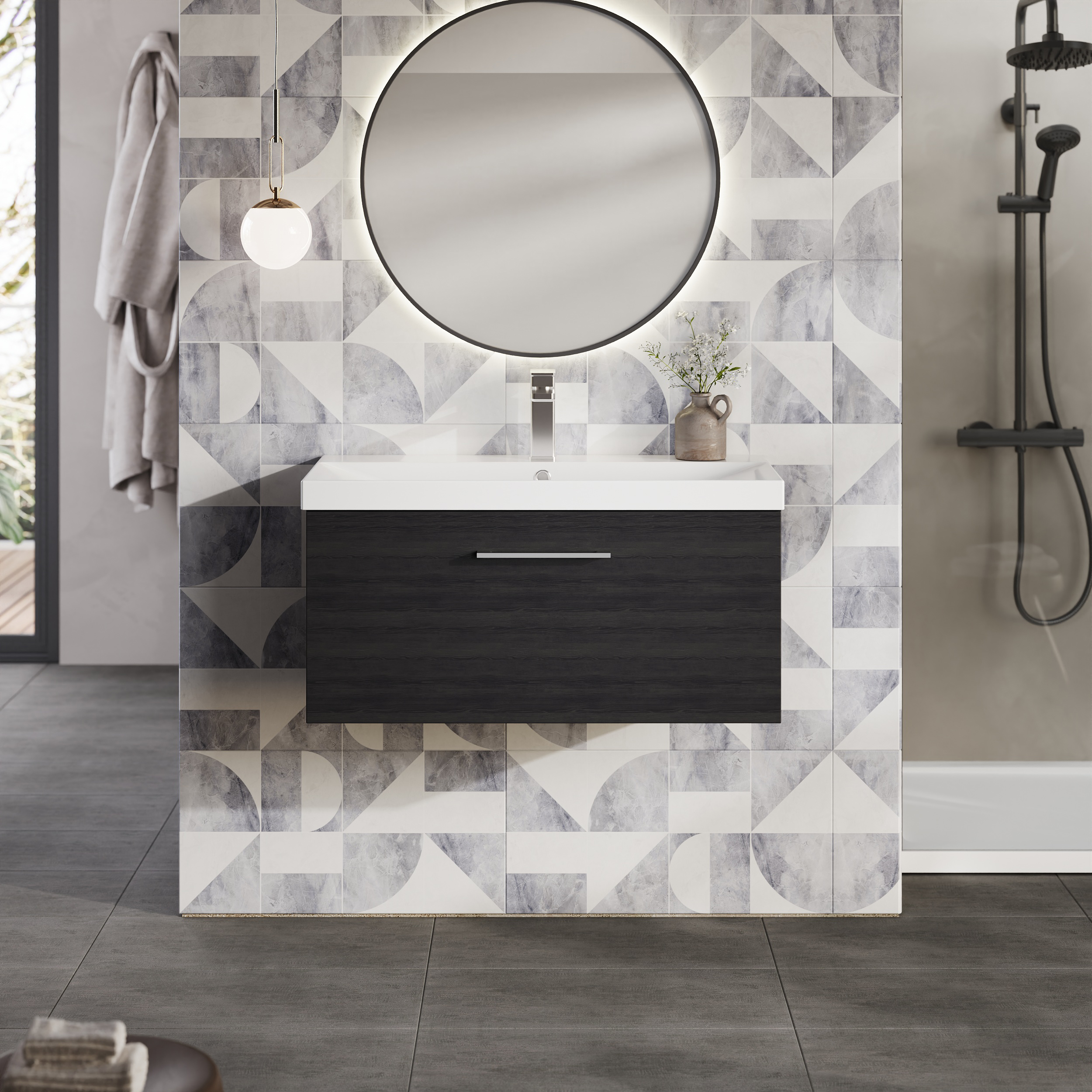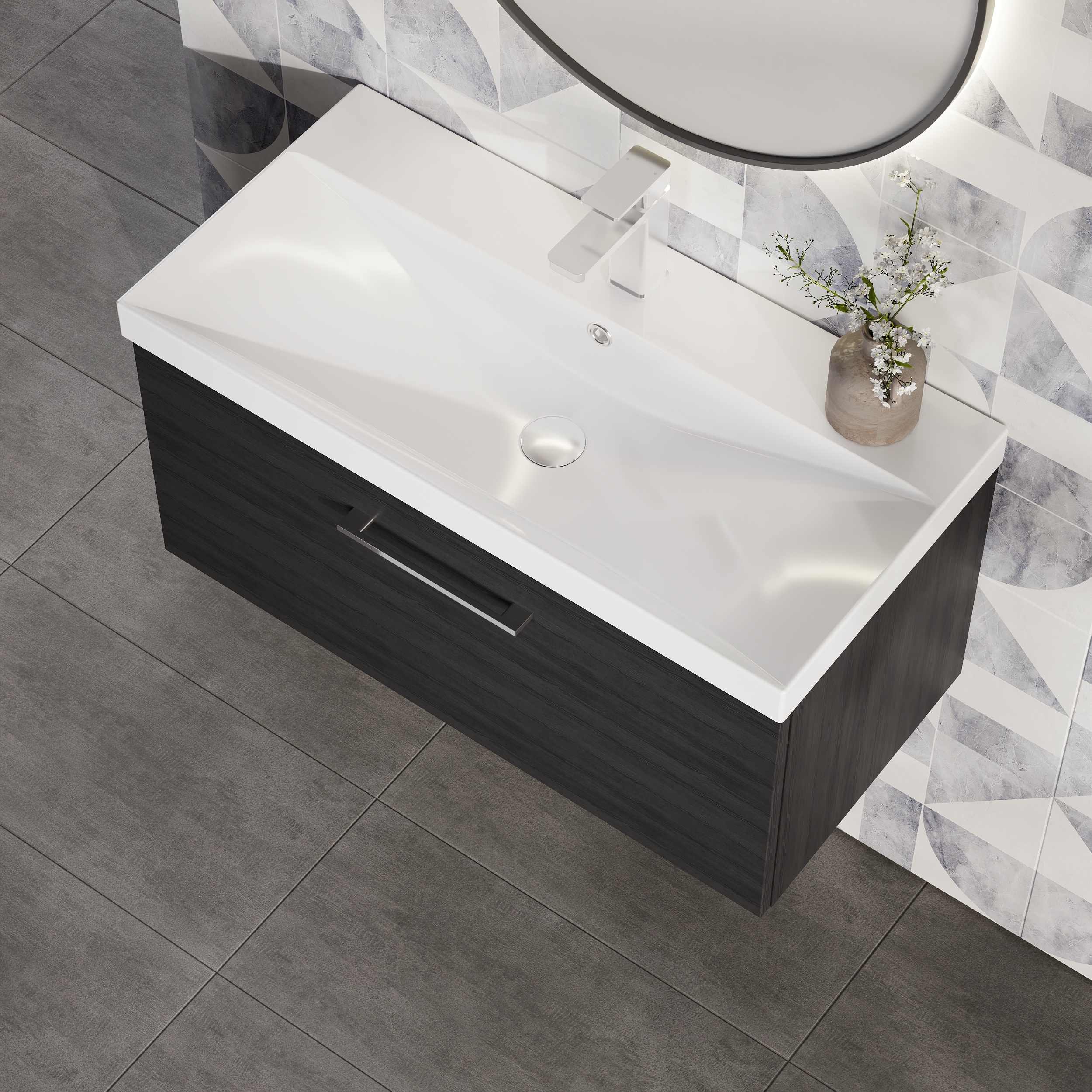 Nuie Arno 800mm Charcoal Black Wall Hung 1-Drawer Vanity Unit With Basin