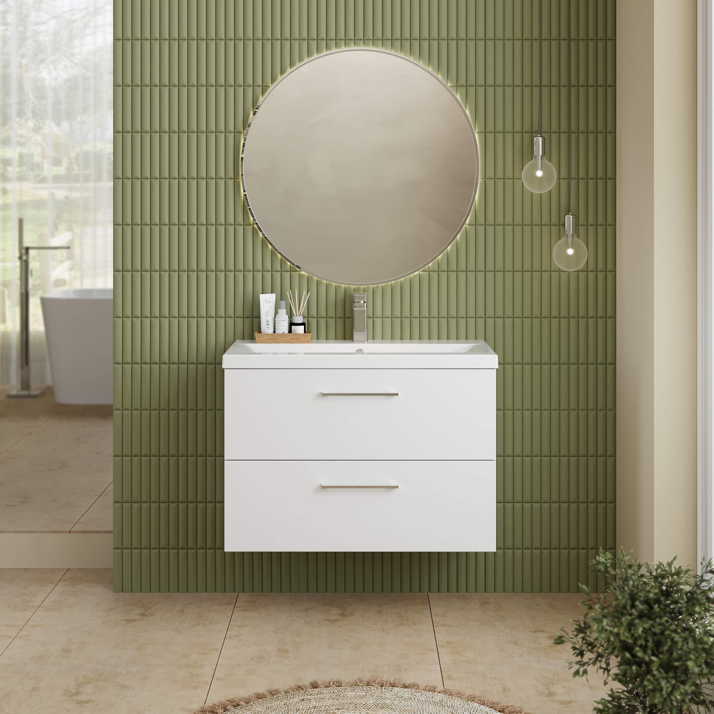 Nuie Arno 800mm Wall Hung 2-Drawer Vanity Unit Including Thin-Edge Basin
