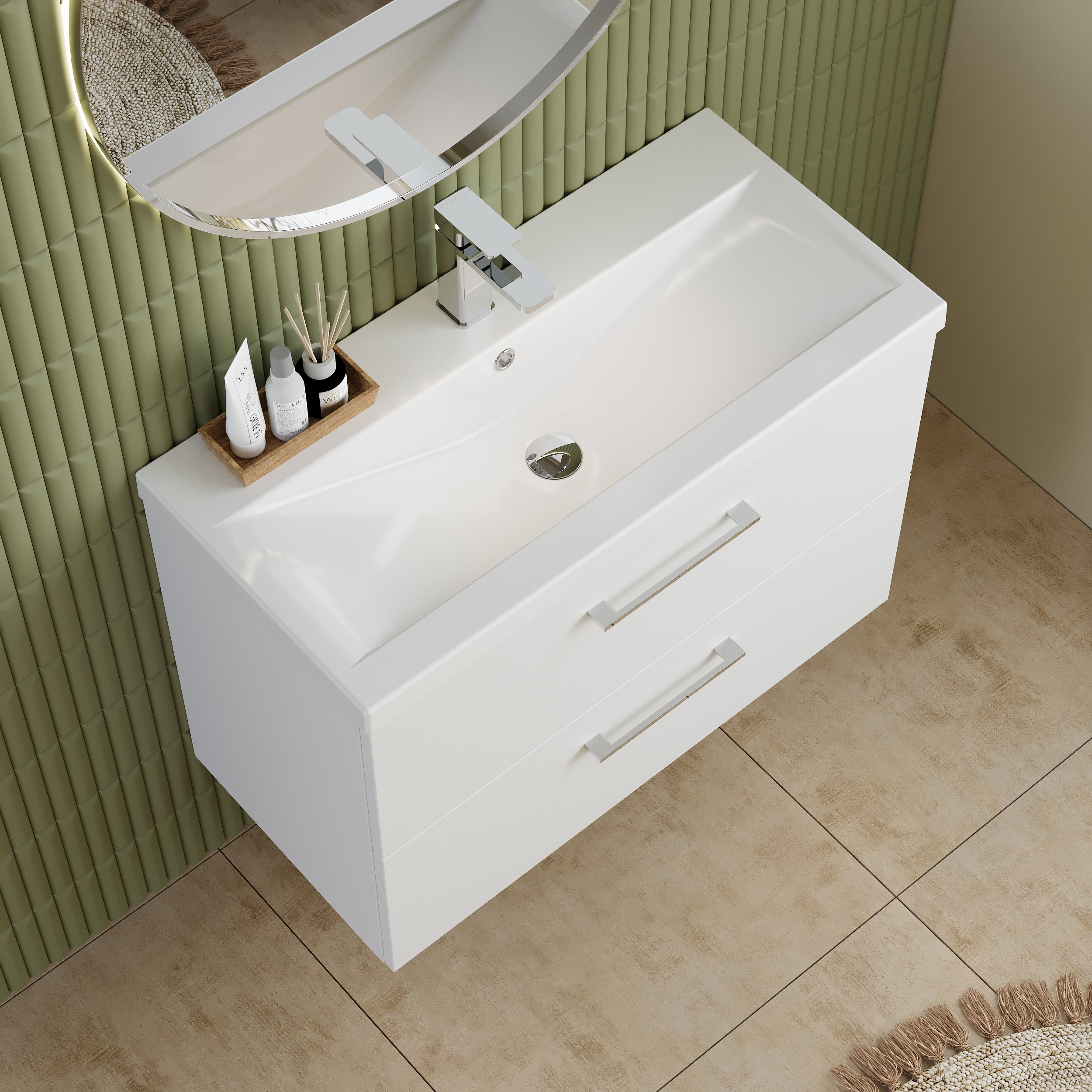 nuie Arno 800mm Wall Hung 2-Drawer Vanity & Mid-Edge Basin - Gloss White