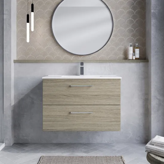 Nuie Arno 800mm Solace Oak Wall Hung 2-Drawer Vanity Unit with Basin