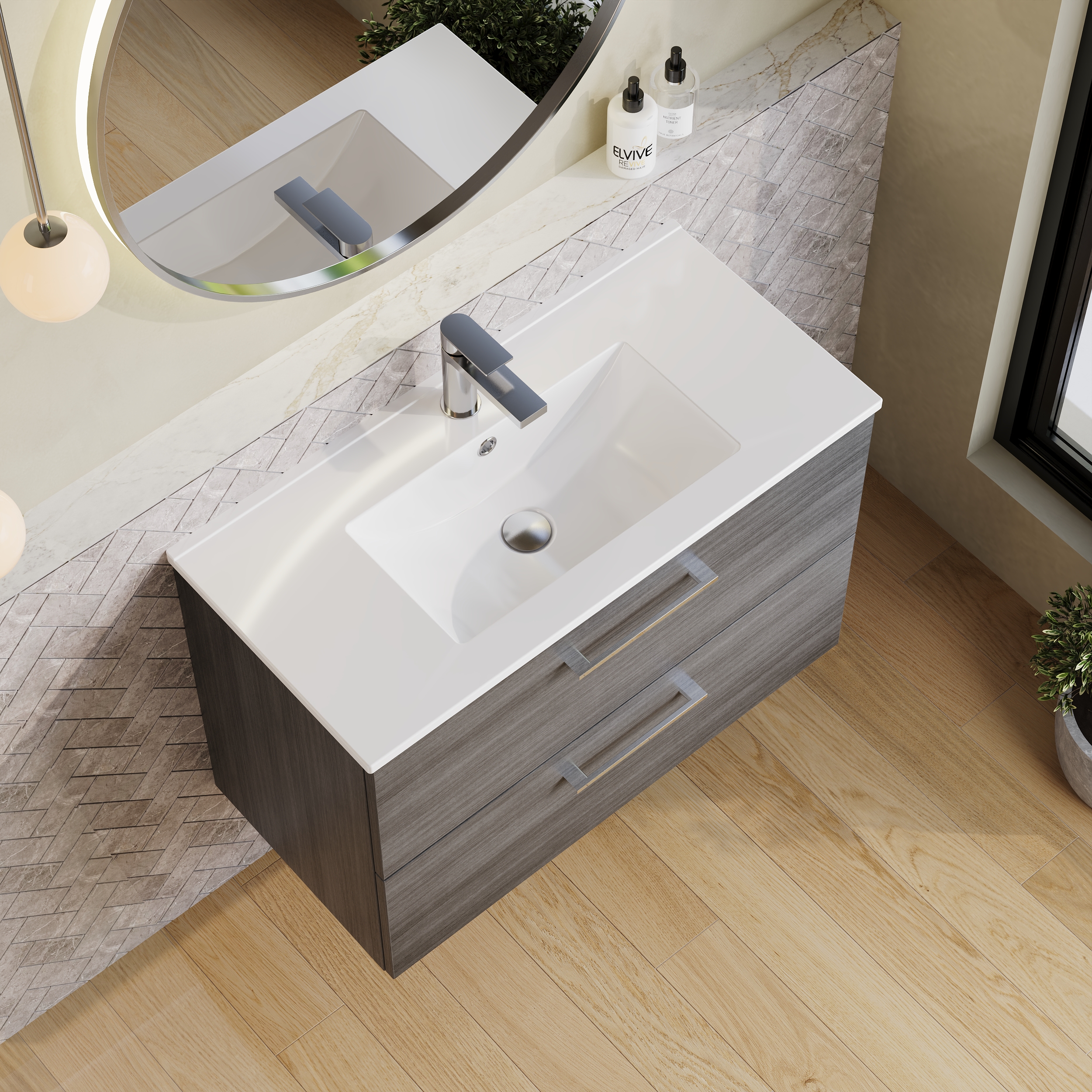 nuie Arno 800mm Wall Hung 2-Drawer Vanity & Minimalist Basin - Anthracite