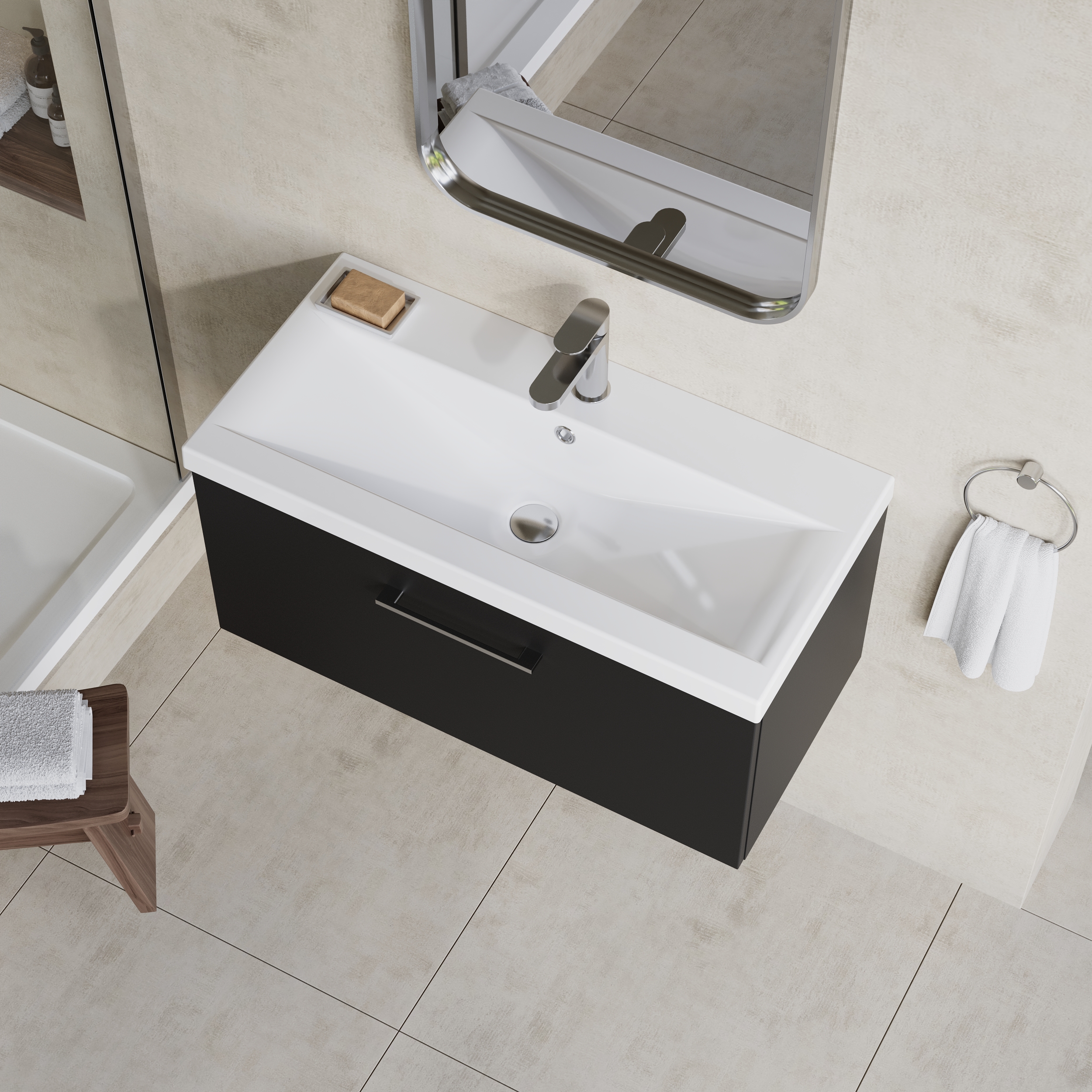 nuie Arno Wall Hung 1 Drawer Vanity & Mid-Edge Ceramic Basin, 800mm - Soft Black