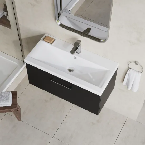 Nuie 800mm Charcoal Black Wall Hung 1-Drawer Vanity Unit with Basin