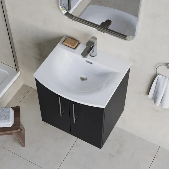 nuie Arno Wall Hung 2 Door Vanity & Curved Ceramic Basin, 500mm - Soft Black