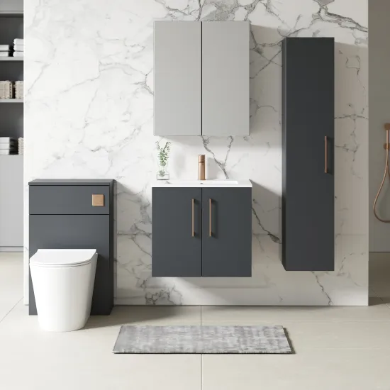 nuie Arno Wall Hung 2 Door Vanity & Minimalist Ceramic Basin, 600mm - Soft Black