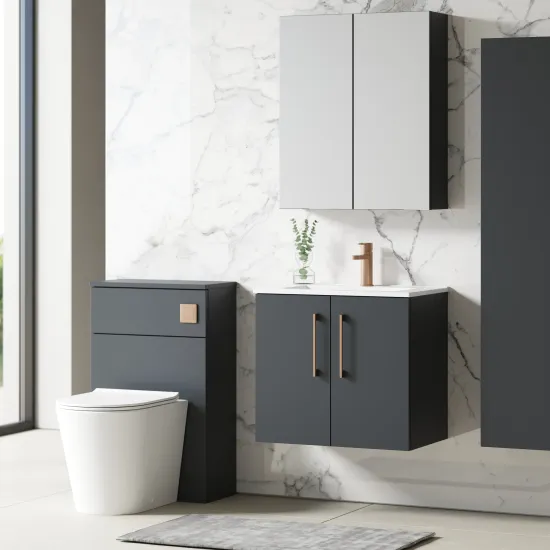 Nuie Arno 600mm Soft Black Wall Hung 2 Door Vanity Unit With Laminate Worktop