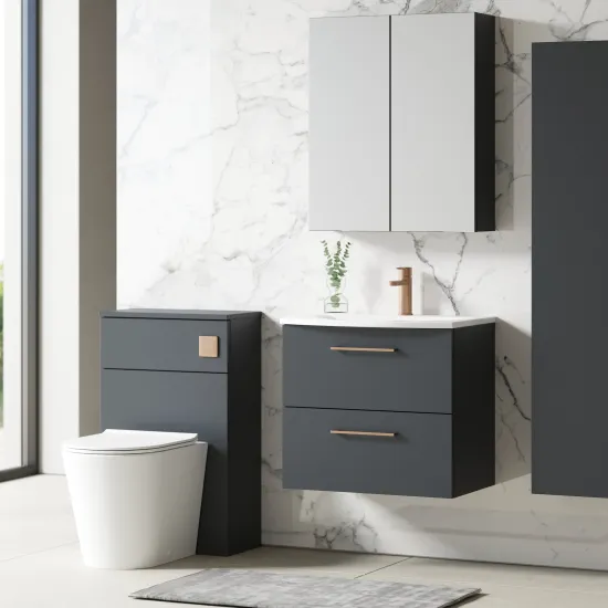 nuie Arno Wall Hung 2 Drawer Vanity & Curved Ceramic Basin, 600mm - Soft Black
