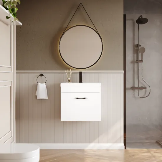 This sleek gloss white finish compliments any modern bathroom to create a designer look