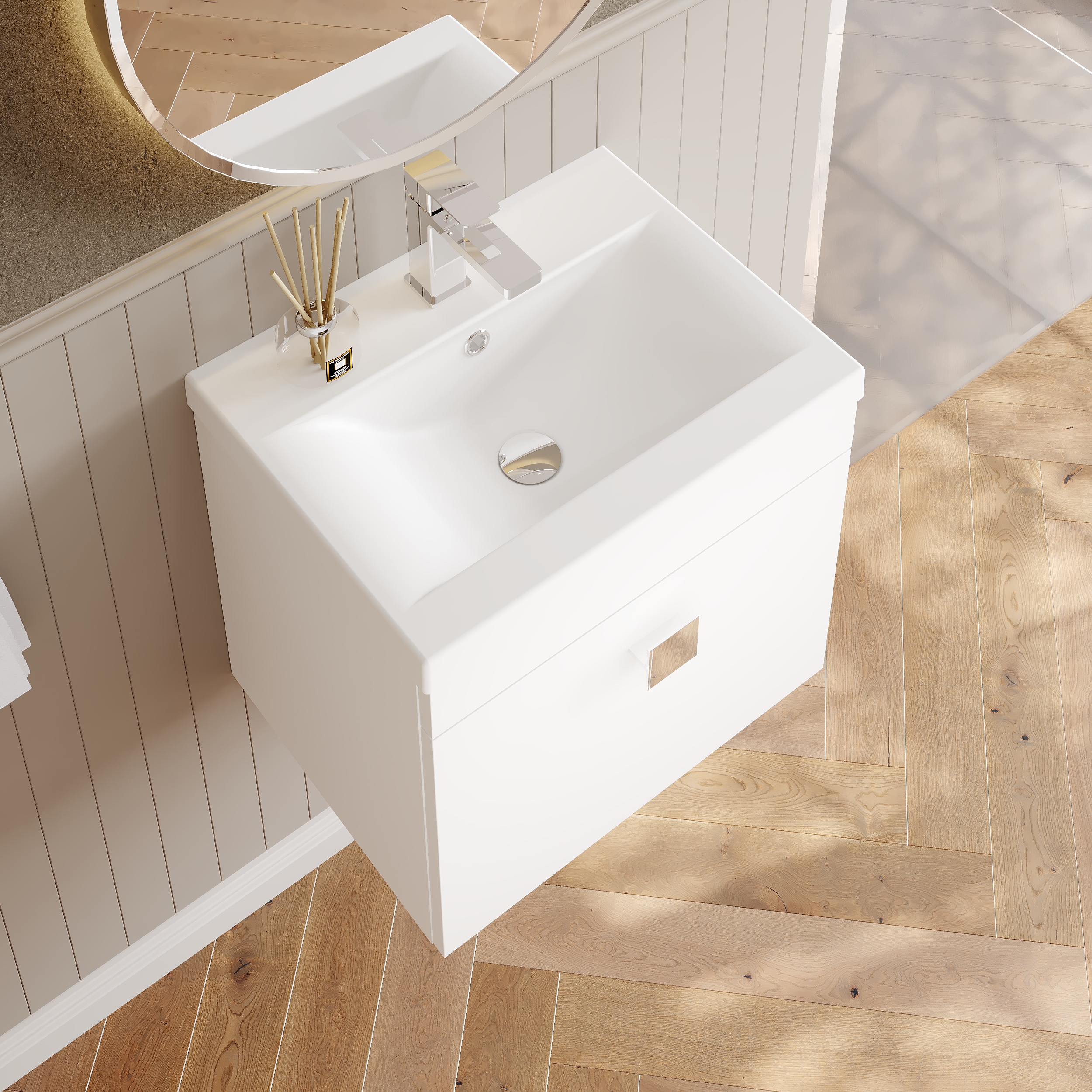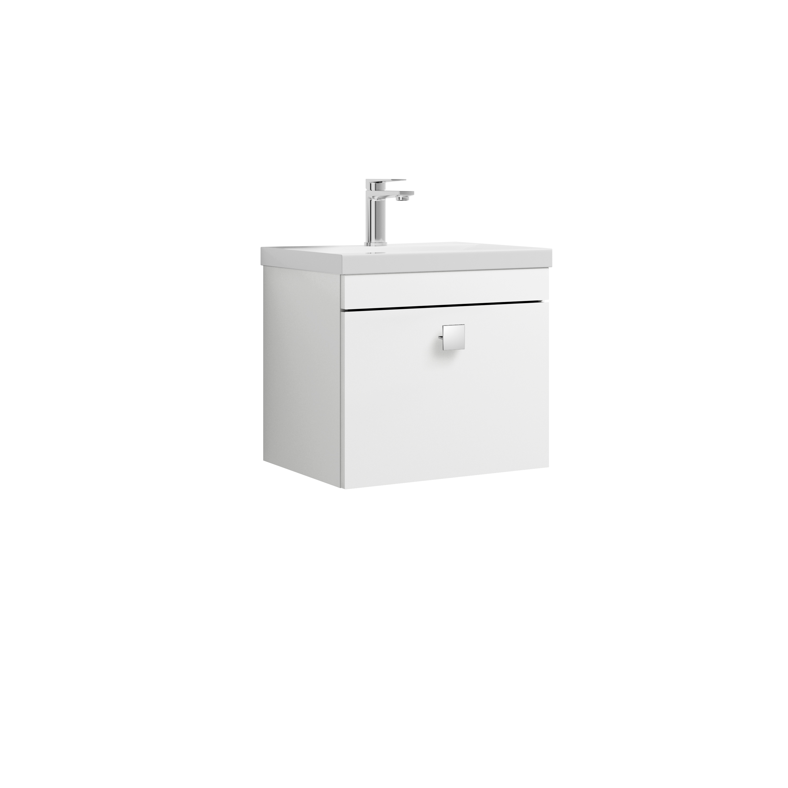 Nuie Athena 500mm Gloss White Wall Hung 1 Drawer Vanity Unit With Ceramic Basin