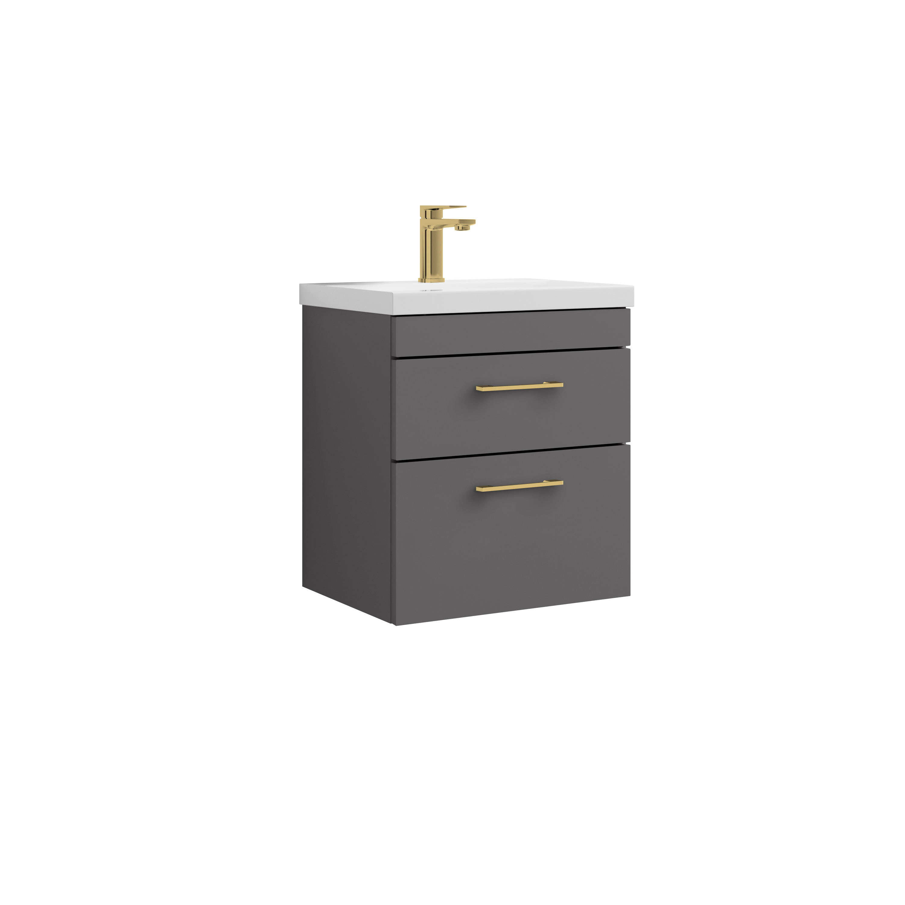 nuie Athena Wall Hung 1 Drawer Vanity with Ceramic Mid-Edge Basin and Handle 500mm - Gloss Grey/Brushed Brass