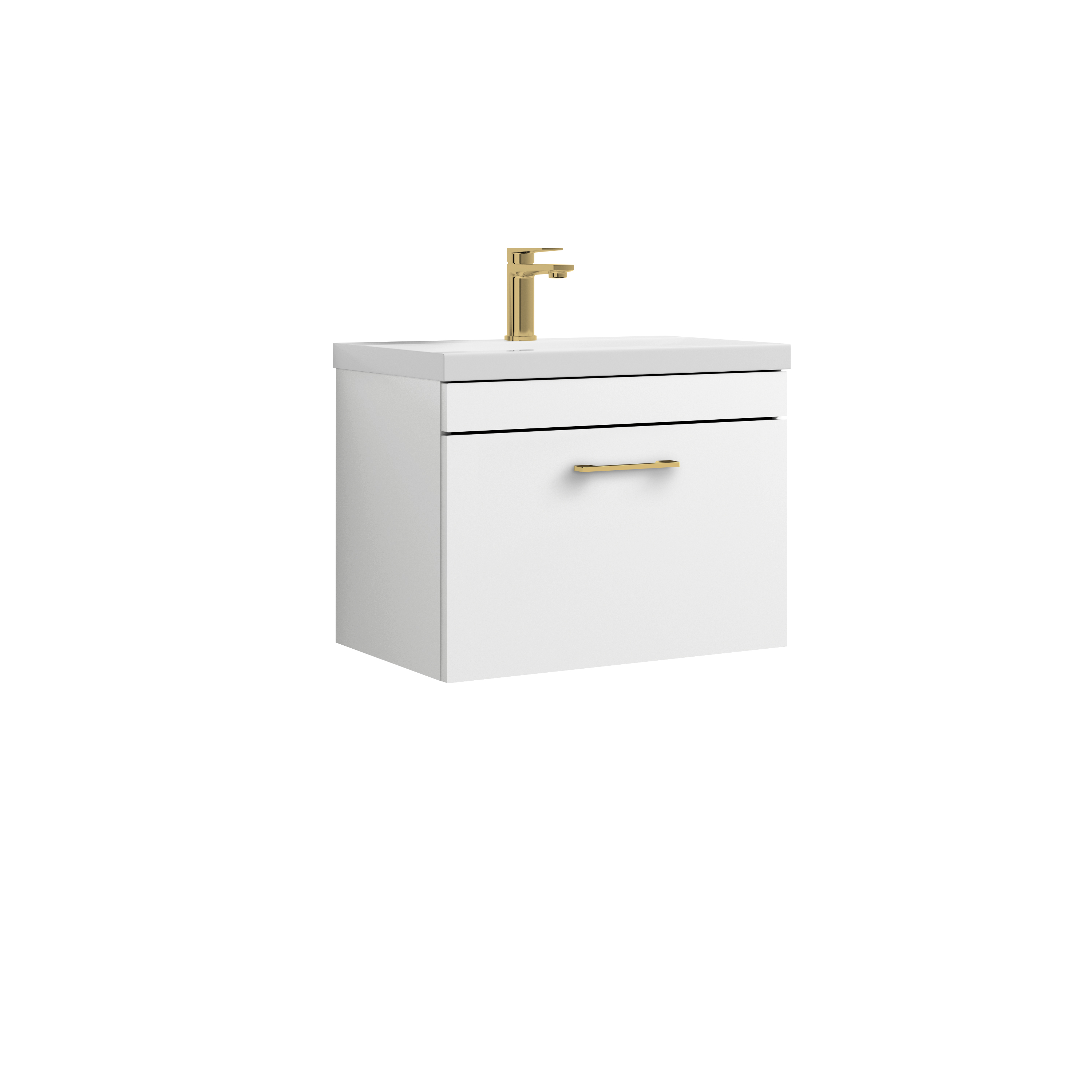 Nuie Athena 600mm Gloss White 1 Drawer Wall Hung Vanity Unit with Basin and Handle