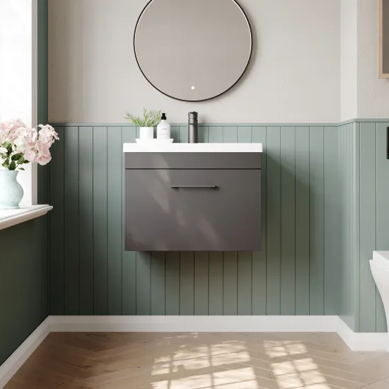 This sleek gloss grey finish compliments any modern bathroom and creates a designer look