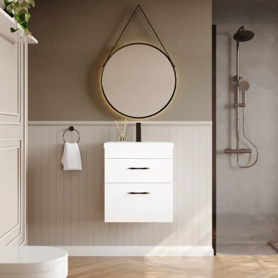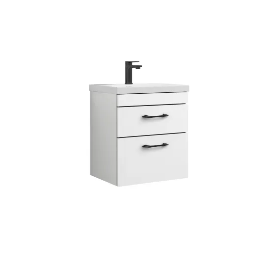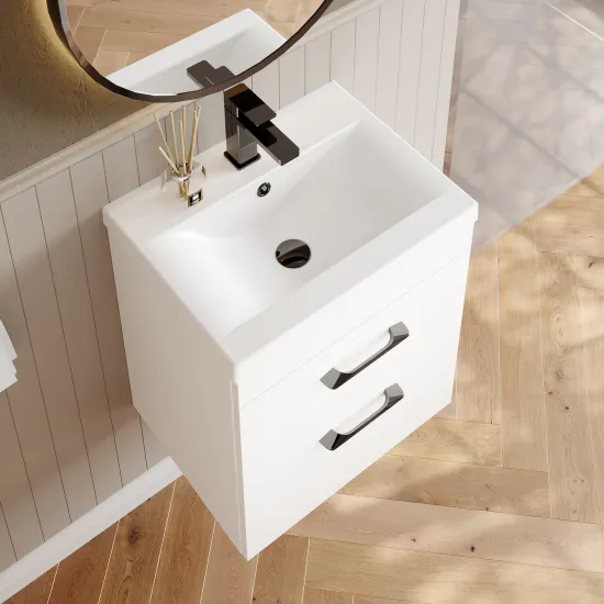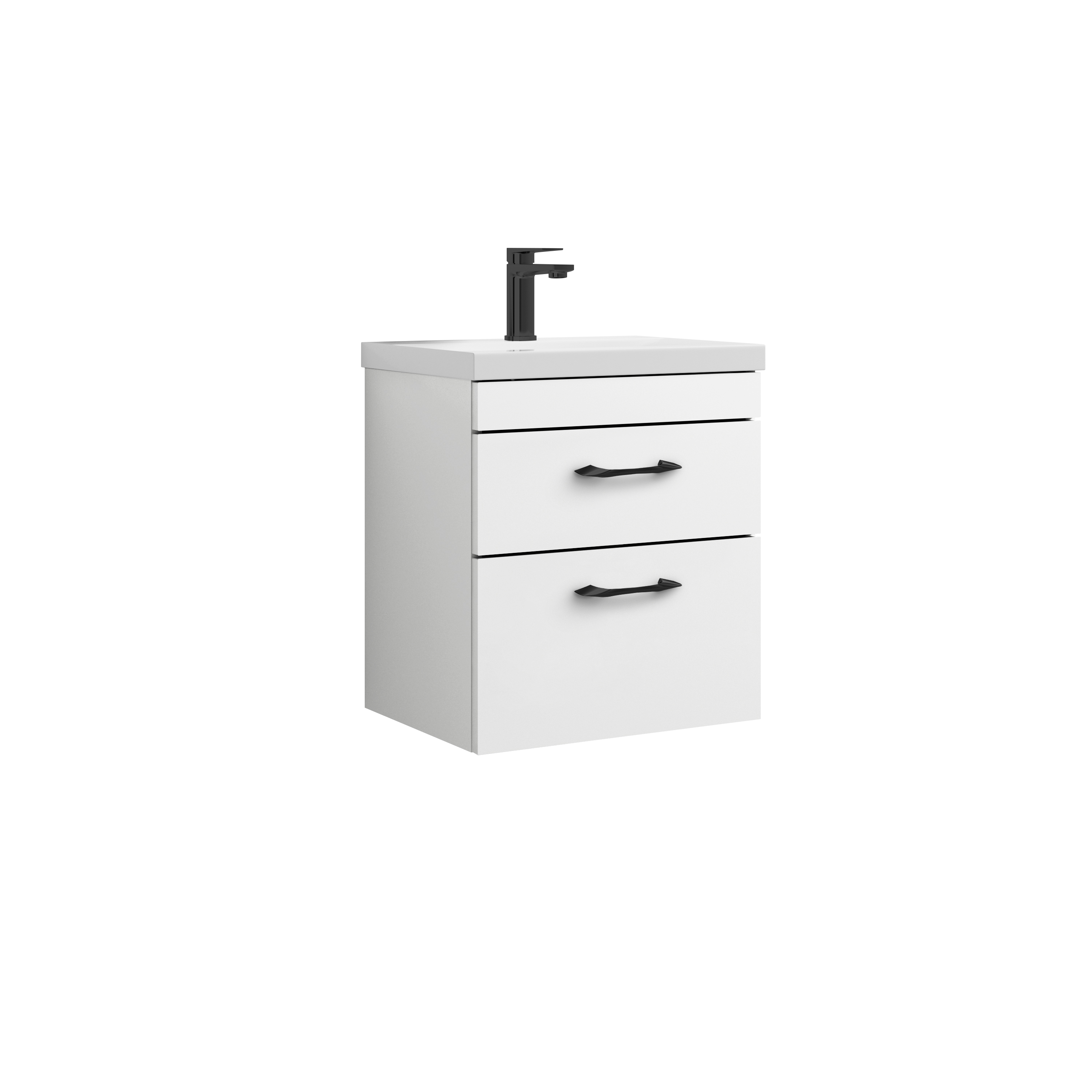 nuie Athena Wall Hung 2 Drawer Vanity with Ceramic Mid-Edge Basin and Handle 500mm - Gloss White/Matt Black