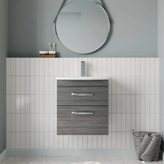 Nuie Athena 505mm Anthracite Woodgrain Wall Hung 2 Drawer Vanity Unit With 1 Tap Hole Basin