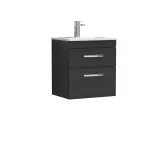 Nuie Athena 505mm Charcoal Black Wall Hung 2 Drawer Vanity Unit With 1 Tap Hole Basin