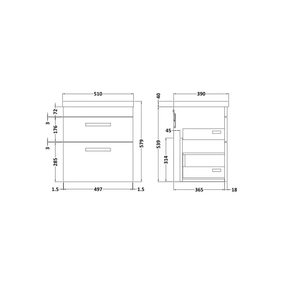 Nuie Athena 500mm Wall Hung 2 Drawer Vanity Unit With Basin