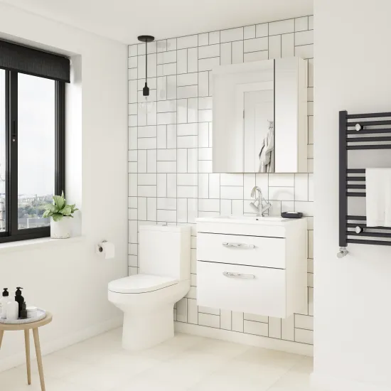 This sleek gloss white finish compliments any modern bathroom to create a designer look