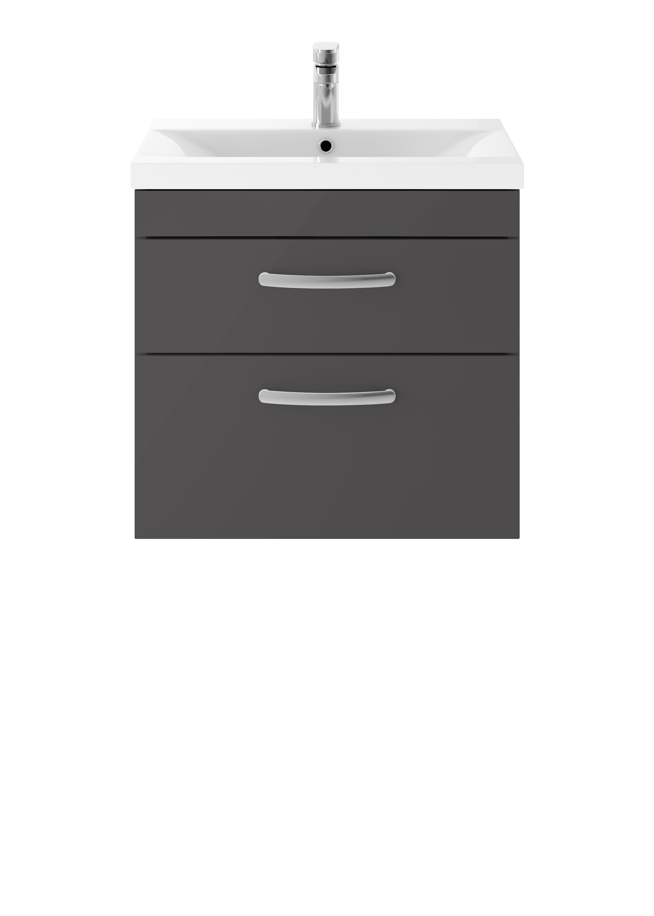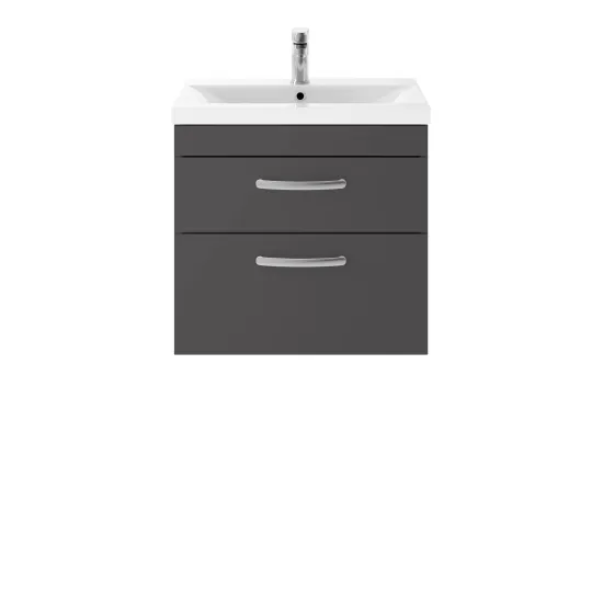 nuie Athena Wall Hung 2 Drawer Vanity With Mid-Edge 1 Tap Hole Ceramic Basin 600mm - Gloss Grey