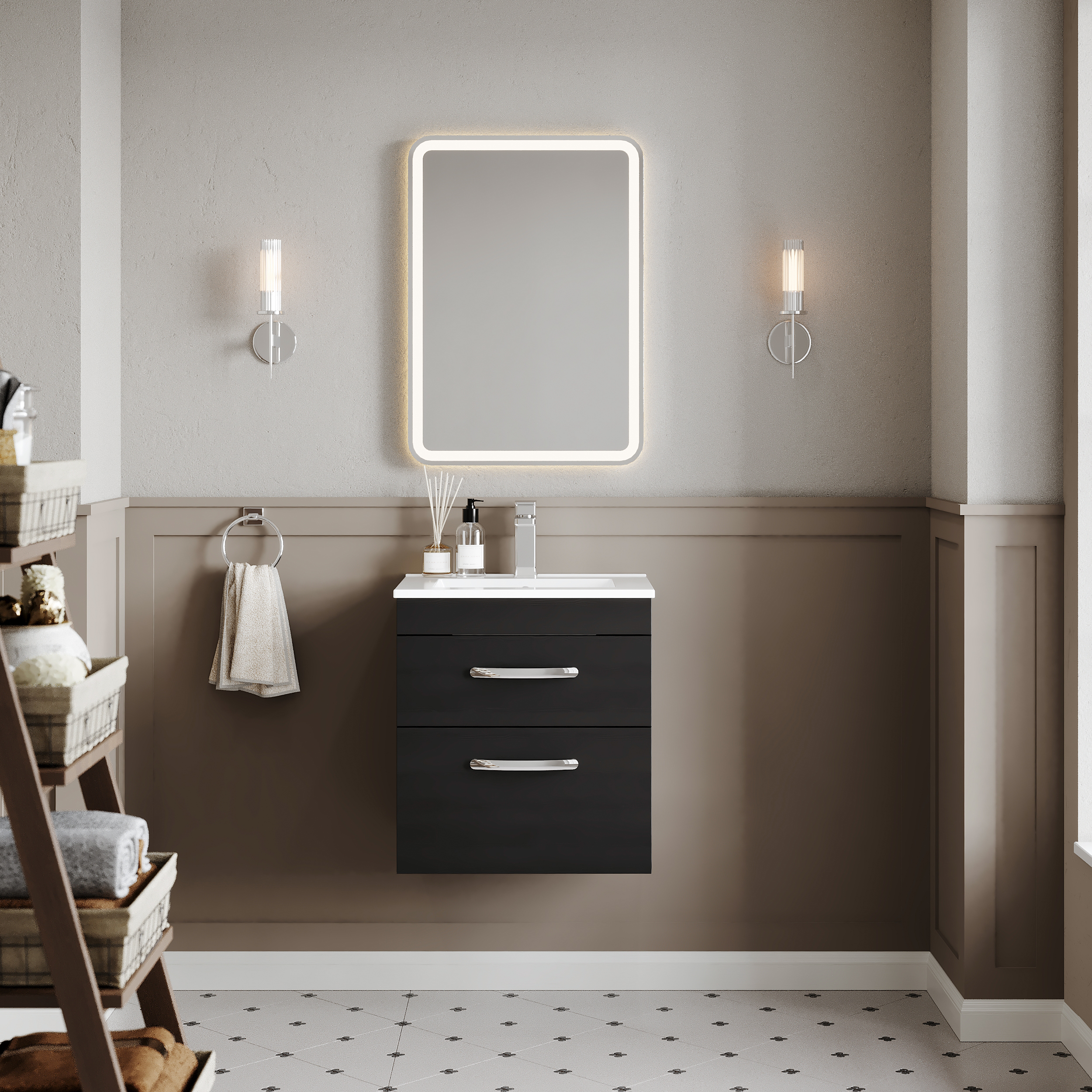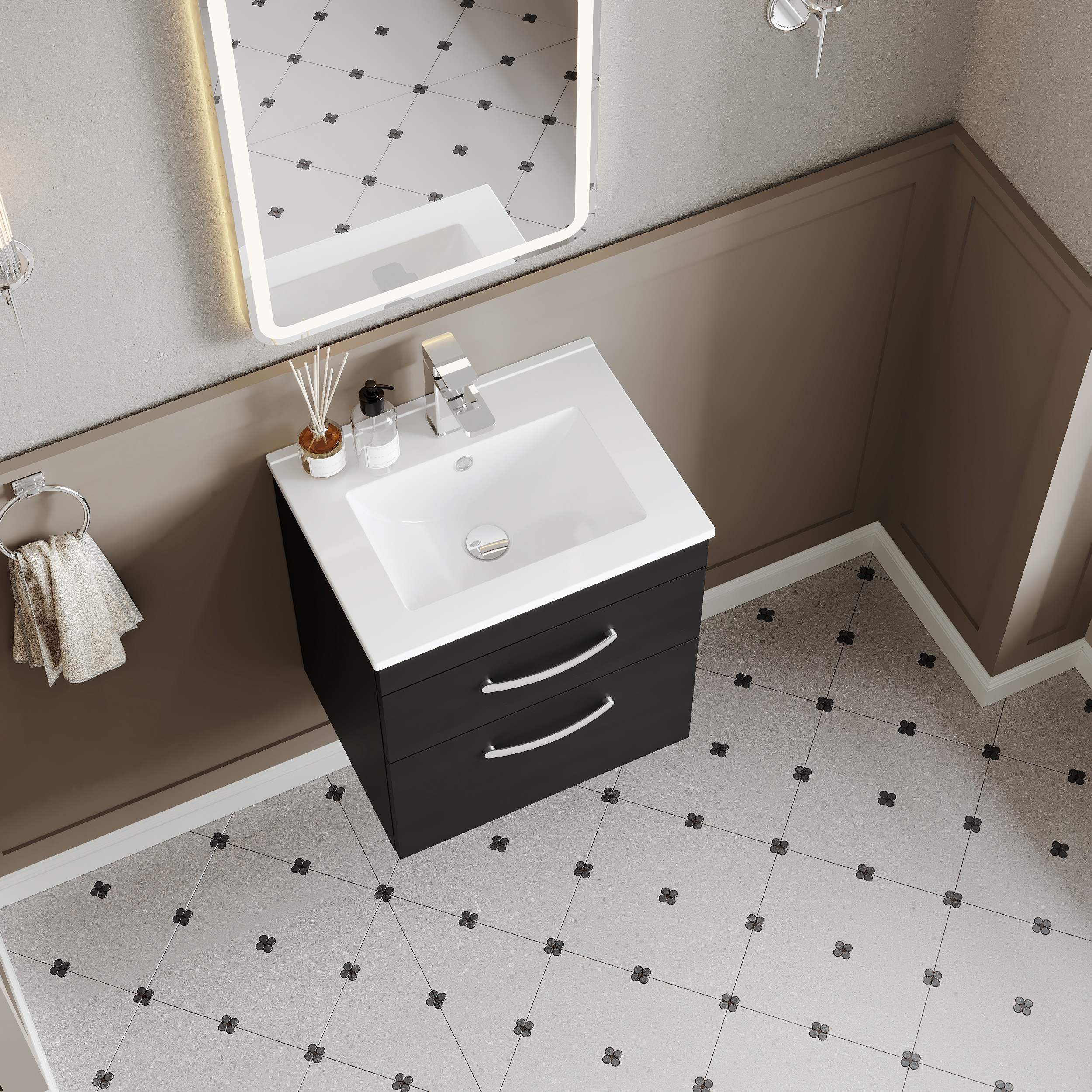 nuie Athena Wall Hung 2 Drawer Vanity With Minimalist 1 Tap Hole Ceramic Basin 500mm - Hacienda Black