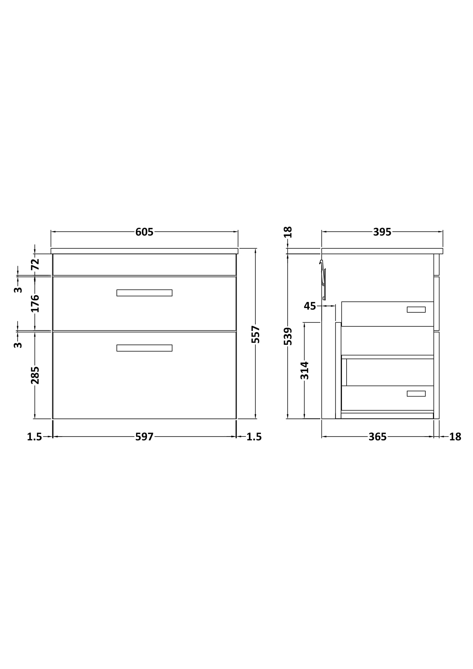 nuie Athena Wall Hung 2 Drawer Vanity With Minimalist 1 Tap Hole Ceramic Basin 600mm - Hacienda Black