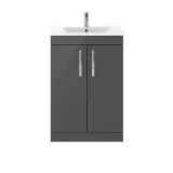 Nuie Athena 600mm Floor Standing 2 Door Vanity Unit with 1 Tap Hole Basin