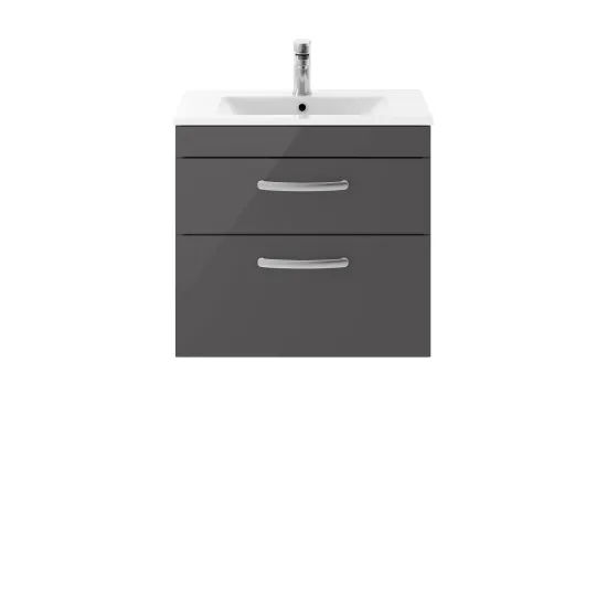 nuie Athena Wall Hung 2 Drawer Vanity With Minimalist 1 Tap Hole Ceramic Basin 600mm - Gloss Grey