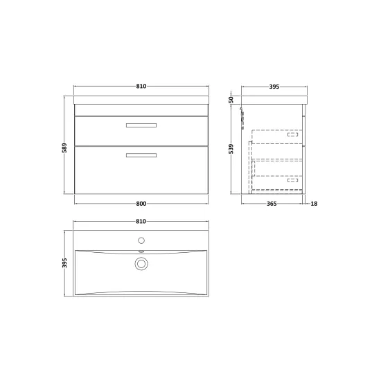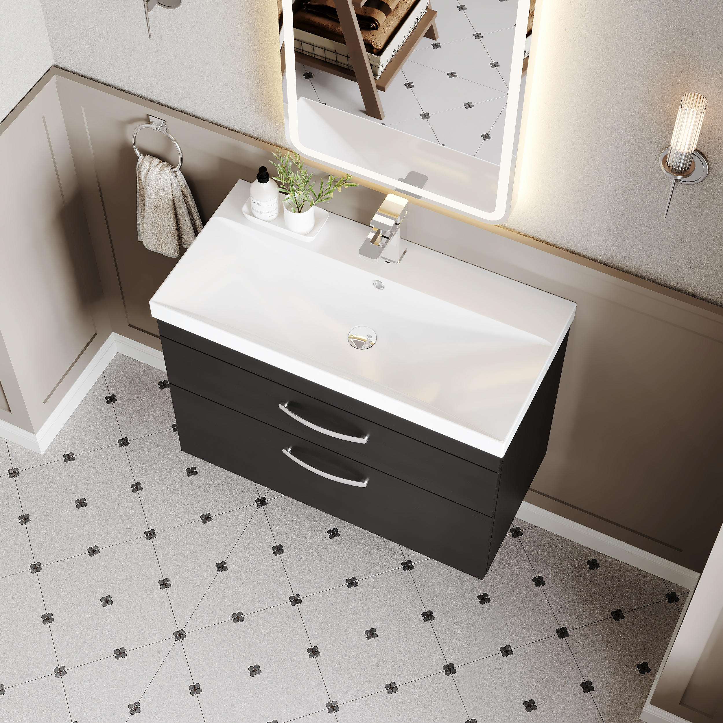 Nuie Athena 800mm Wall Hung 2 Drawer Vanity Unit With Thin-Edge 1 Tap Hole Basin