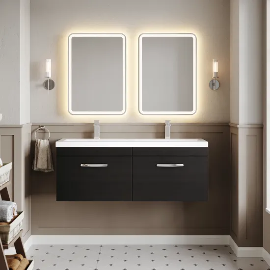 nuie Athena Wall Hung 2 Drawer Vanity With Twin Ceramic Basin 1200mm - Hacienda Black