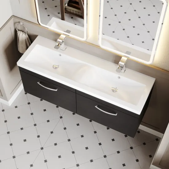 Nuie Athena 1200mm Anthracite Woodgrain Wall Hung 2 Drawer Vanity Unit With Twin Basin