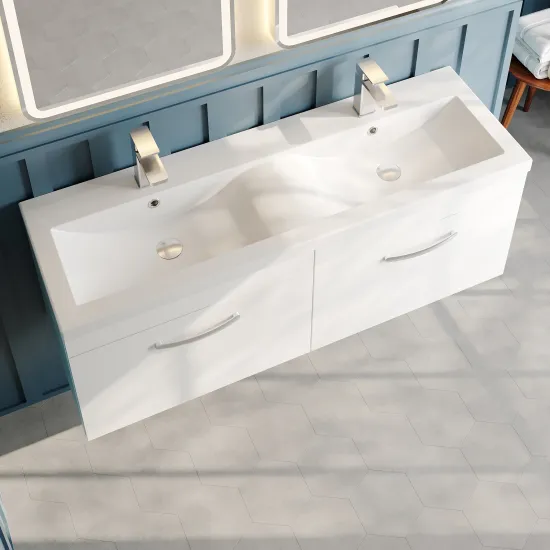 nuie Athena Wall Hung 2 Drawer Vanity With Twin Ceramic Basin 1200mm - Gloss White