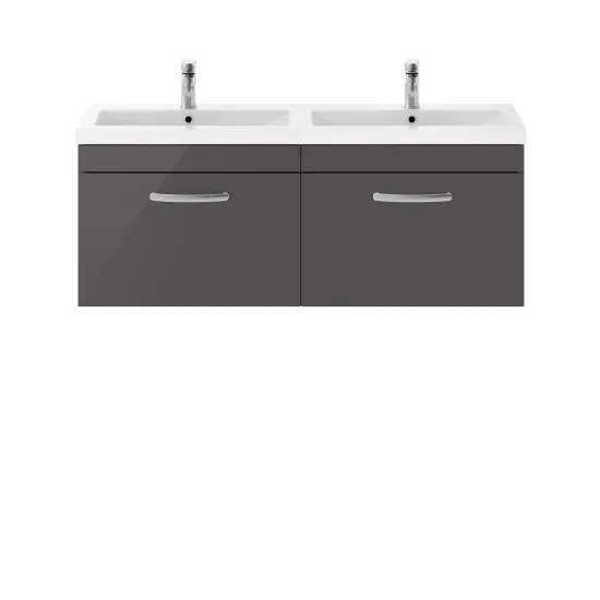 nuie Athena Wall Hung 2 Drawer Vanity With Twin Ceramic Basin 1200mm - Gloss Grey