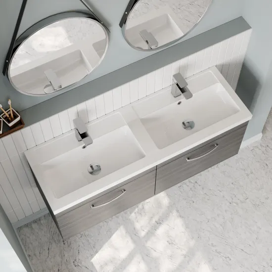 nuie Athena Wall Hung 2 Drawer Vanity With Twin Polymarble Basin 1200mm - Anthracite Woodgrain