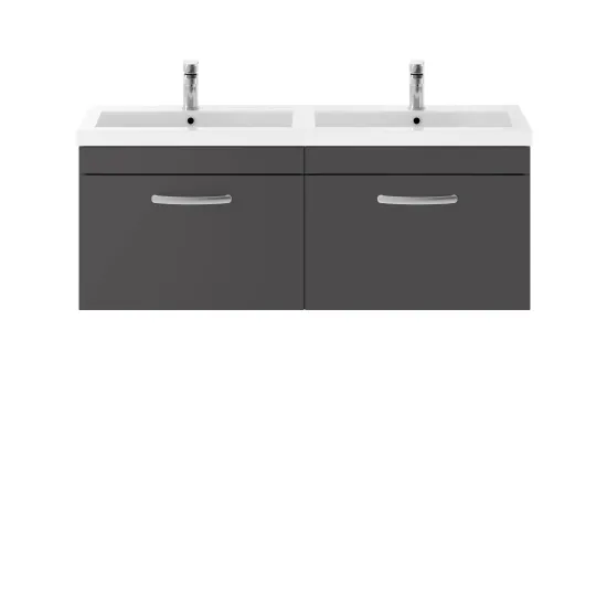 nuie Athena Wall Hung 2 Drawer Vanity With Twin Polymarble Basin 1200mm - Gloss Grey