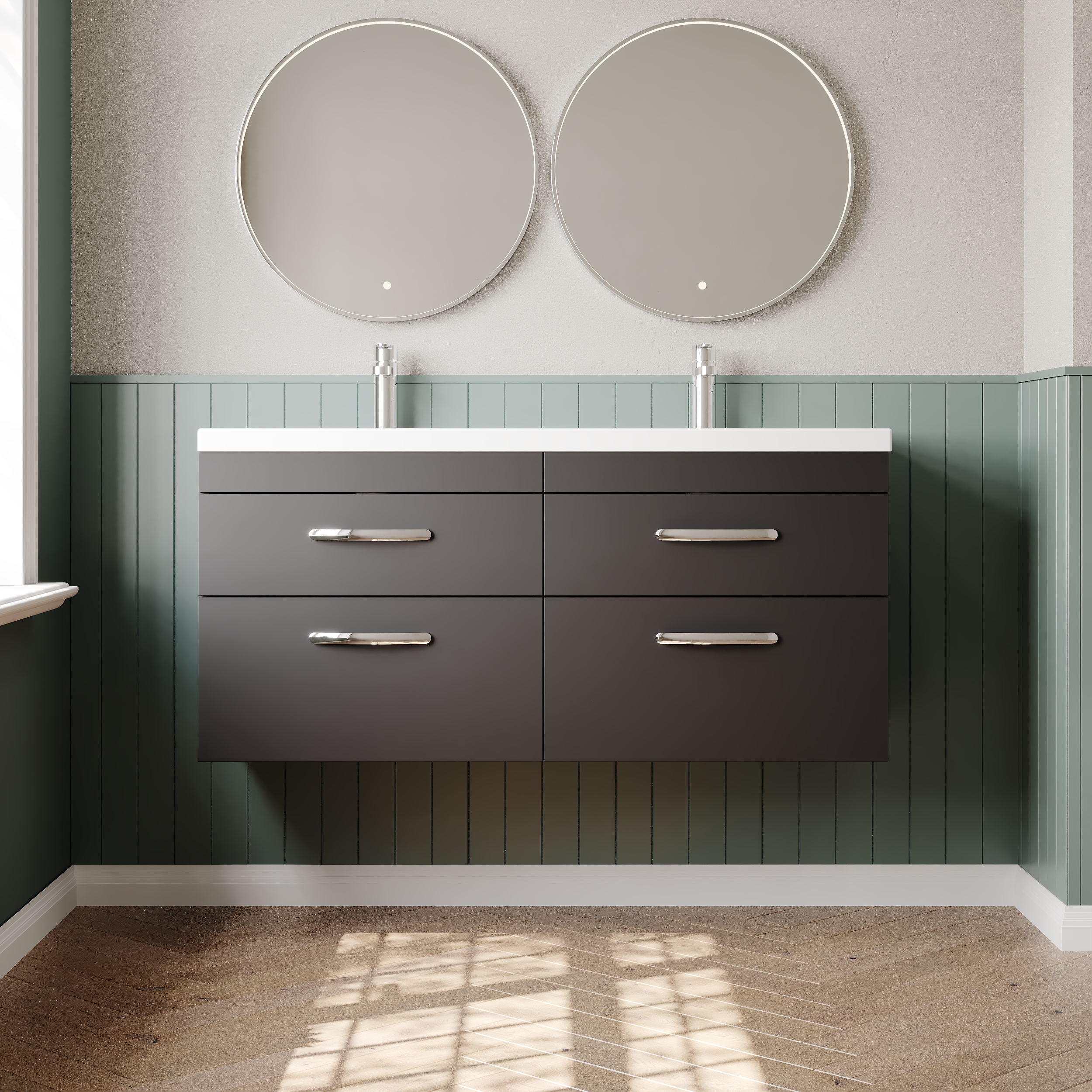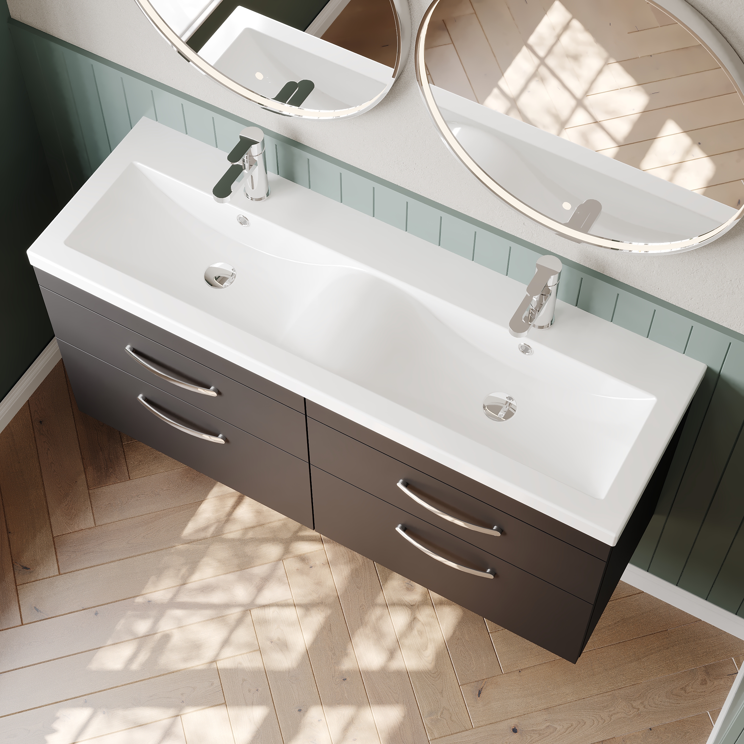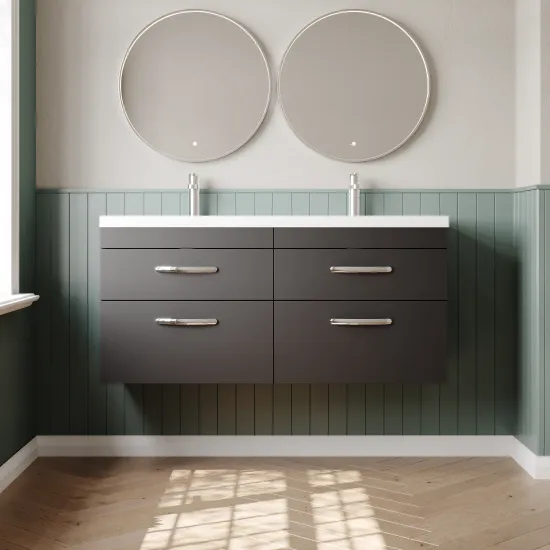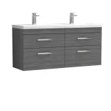 Nuie Athena 1200mm Anthracite Woodgrain Wall Hung 4 Drawer Vanity Unit With Twin Basin