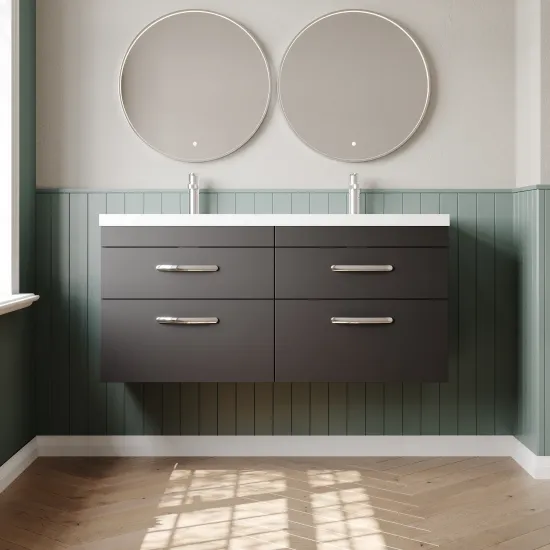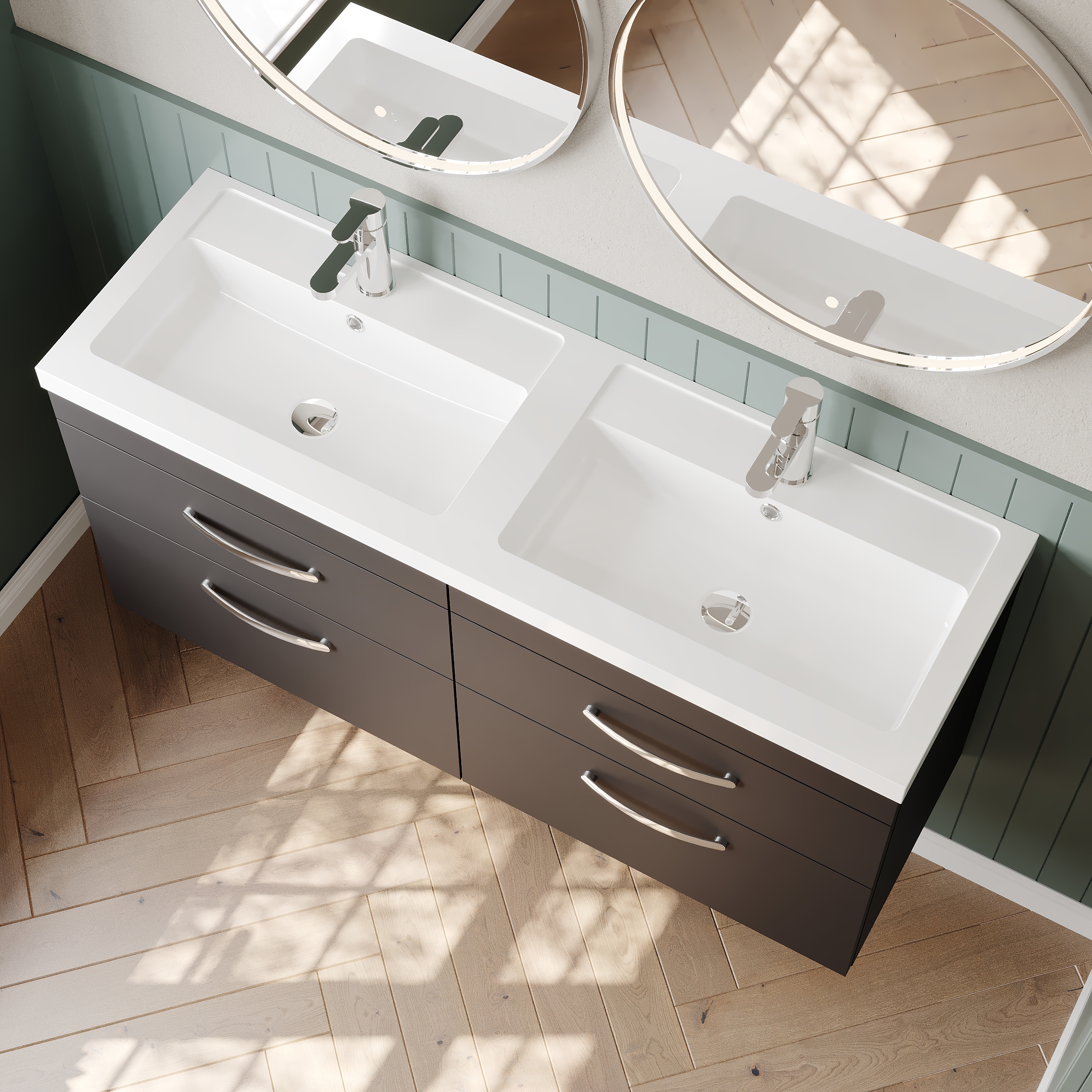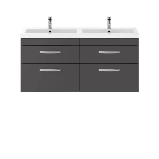 nuie Athena Wall Hung 4 Drawer Vanity With Twin Polymarble Basin 1200mm - Gloss Grey