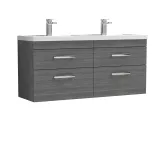 Nuie 1200mm Anthracite Woodgrain Wall Hung 4 Drawer Vanity Unit With Twin Basin