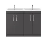 Nuie Athena 1200mm Floor Standing 4 Door Vanity Unit With Twin Polymarble Basin