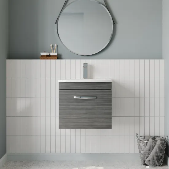 Nuie Athena 500mm Anthracite Woodgrain Wall Hung Soft Close Drawer Vanity Unit With Basin