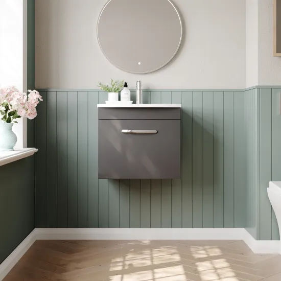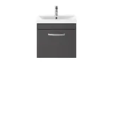 Nuie Athena 500mm Gloss Grey Wall Hung Single Drawer Vanity Unit With 1 Tap Hole Basin